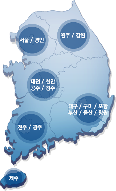 전국 지사(협력사) 체제를 갖추고 있어 언제라도 신속하게 전국 각 지역의 현장을 원활하게 지원할 수 있습니다.